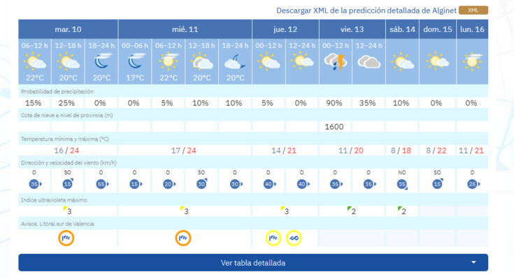 Alginet es troba en situació de prealerta davant l’avís taronja d’AEMET per forts vents, amb ratxes que poden tenir una intensitat considerable i que poden anar de 70 fins a 90 Km/h.