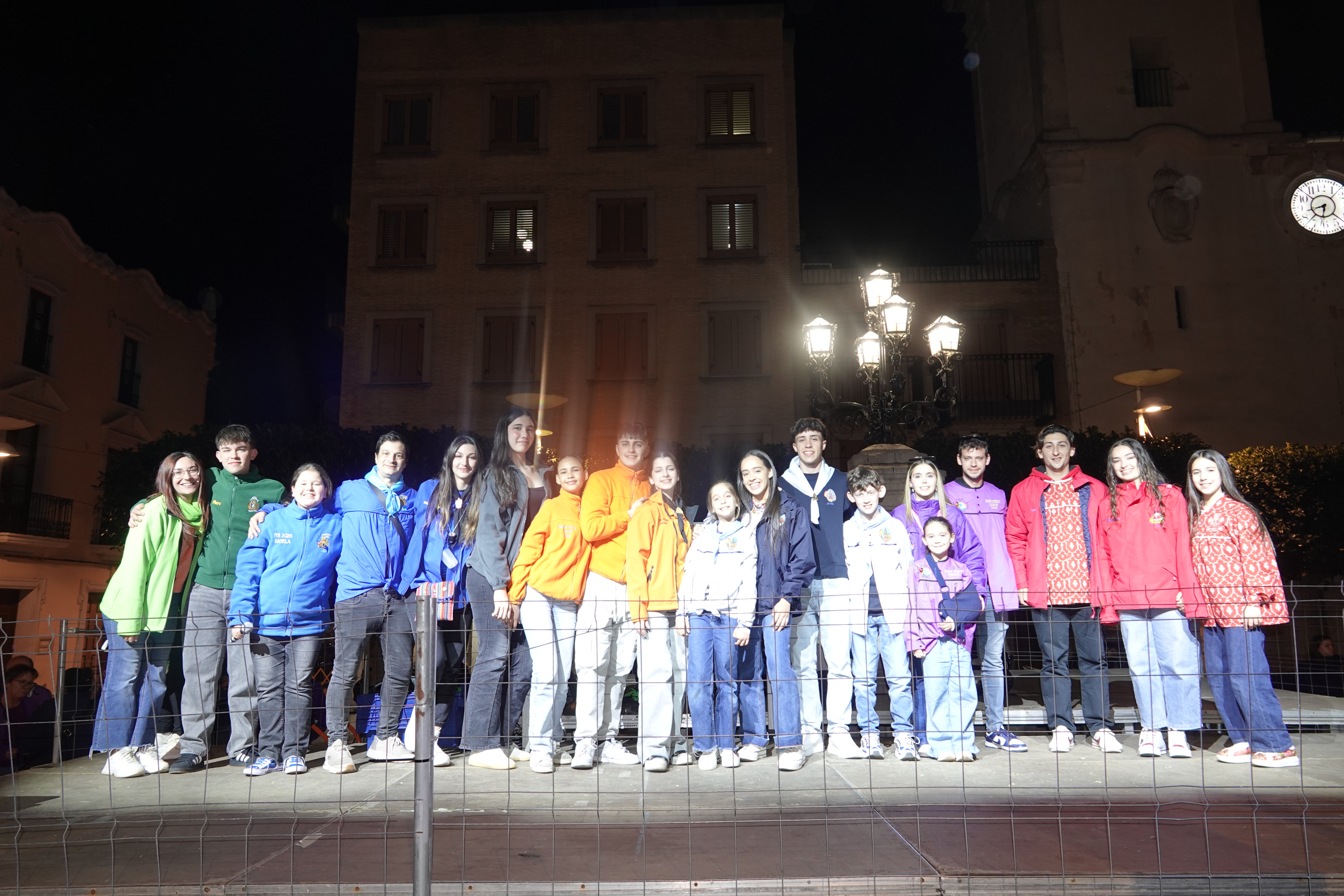 En acabar les actuacions, els representants de cada comissió fallera, van pujar a l’escenari per dirigir-se al públic i transmetre un missatge conjunt de germanor fallera, convidant a viure les Falles amb respecte, convivència i orgull de poble.