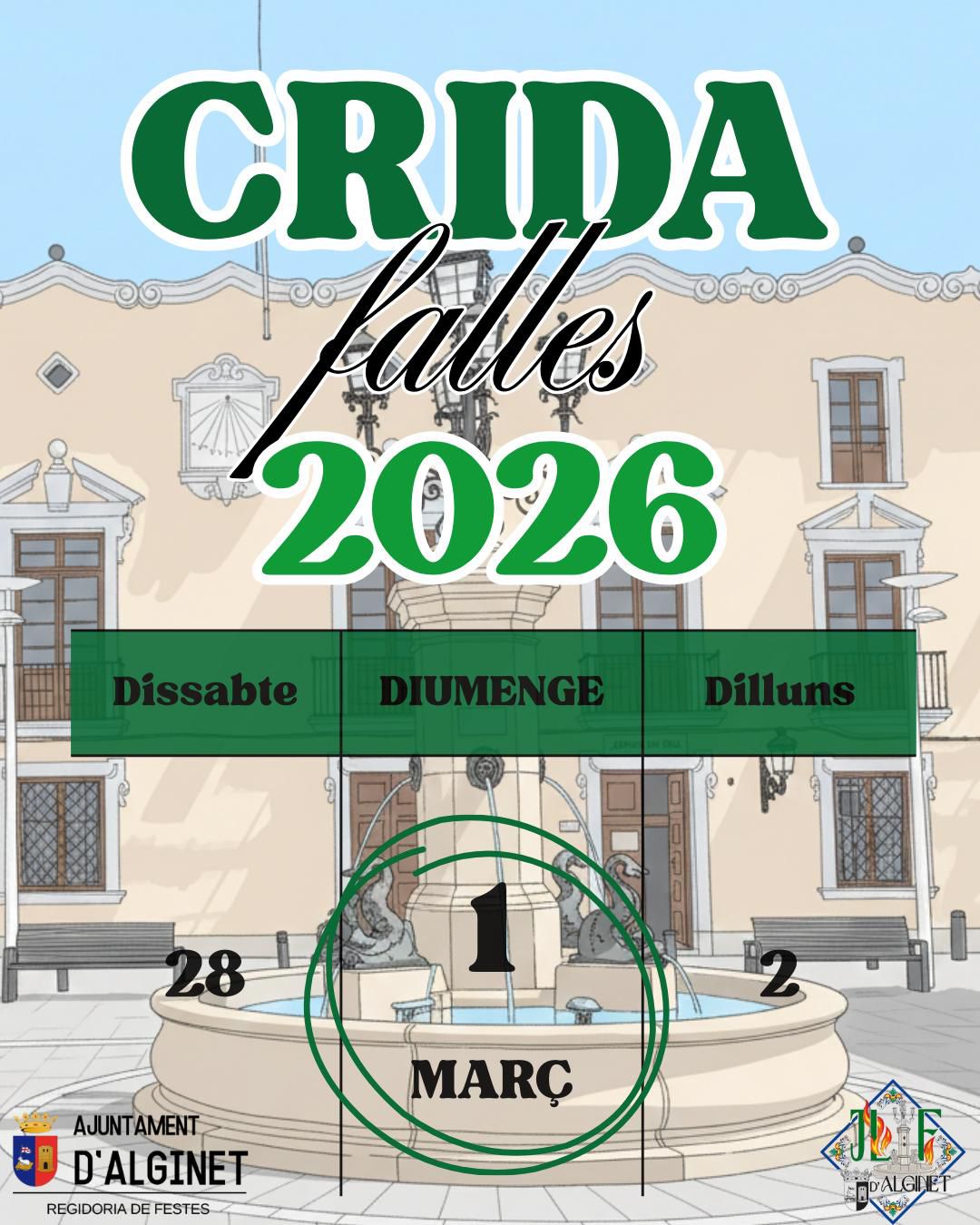 Alginet celebrarà este diumenge la tradicional Crida, l’acte que marca l’inici oficial de les Falles al municipi. La jornada organitzada per la Junta Local Fallera compta amb el suport de l’Ajuntament d’Alginet i amb la participació de totes les comissions falleres de la localitat.