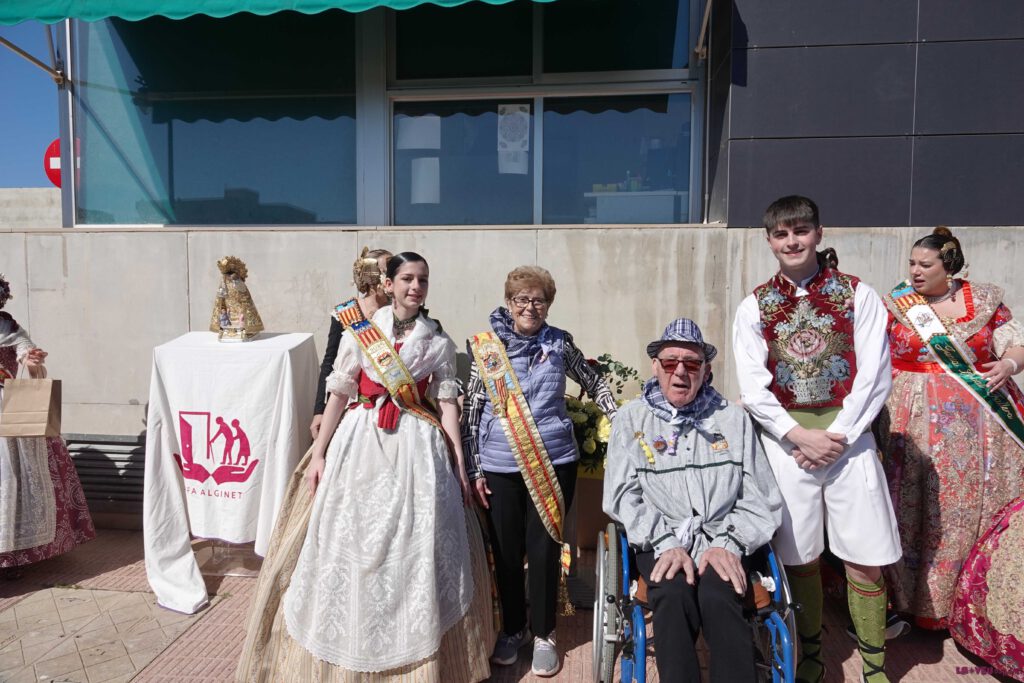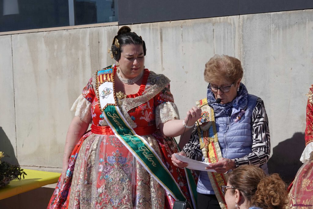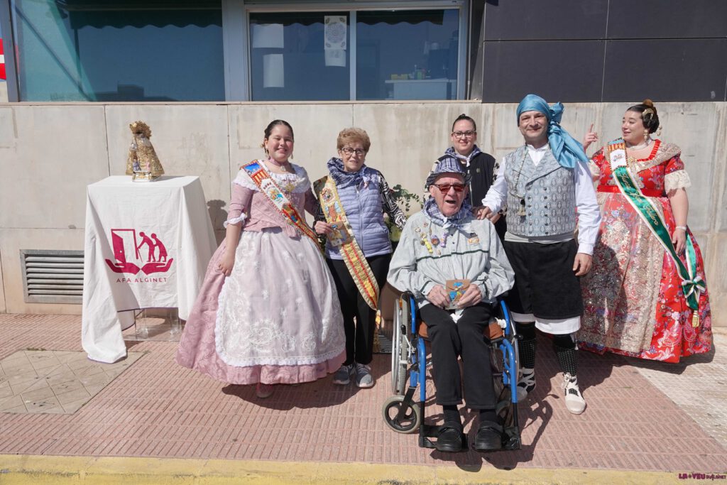 L’acte ha tingut dos protagonistes indiscutibles: Rafaela Lozano, Fallera Major del Centre de Dia, i Modesto Noves, el seu President. En un moment carregat de simbolisme, la presidenta de la Junta Local Fallera ha imposat la insígnia de l’entitat als representants del centre, un gest que ratifica la plena integració d’este col·lectiu en l’agenda oficial de les Falles d’Alginet.