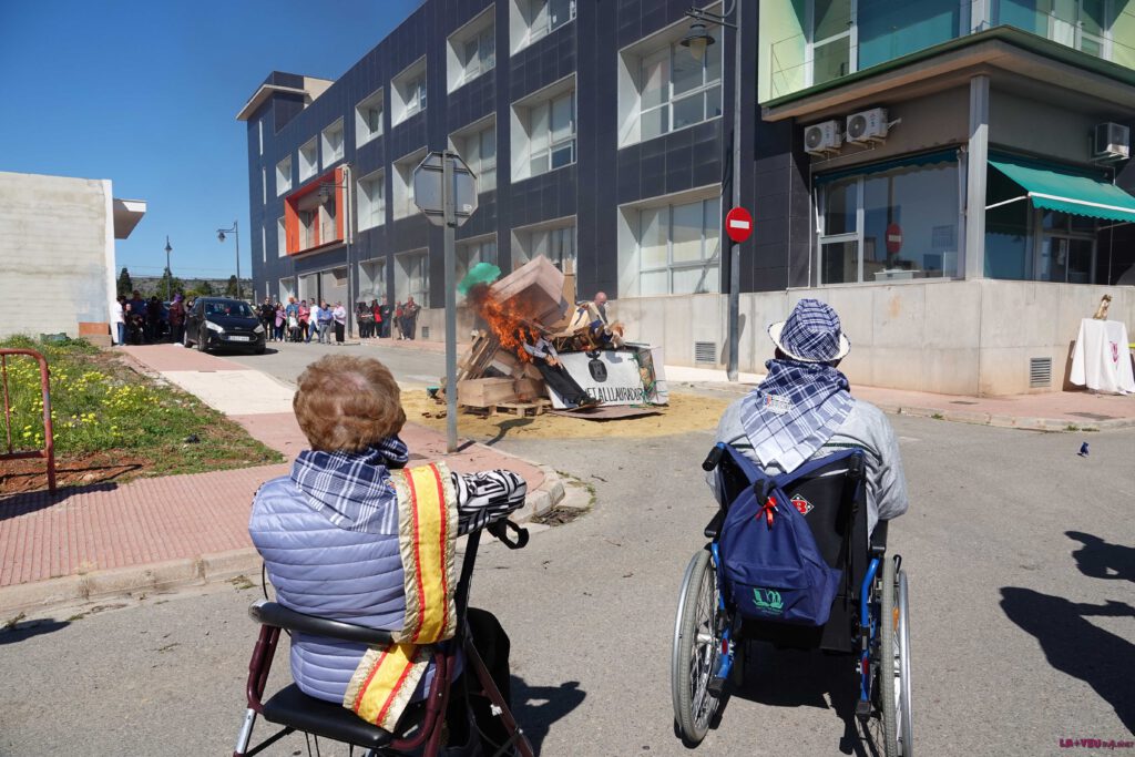 Les flames han pres la falla del Centre de Dia davant l’atenta i emocionada mirada dels assistents. El foc ha complit la seua funció purificadora, donant pas a un esmorzar de germanor que ha servit per a estrényer llaços entre els joves fallers i els veterans del poble.