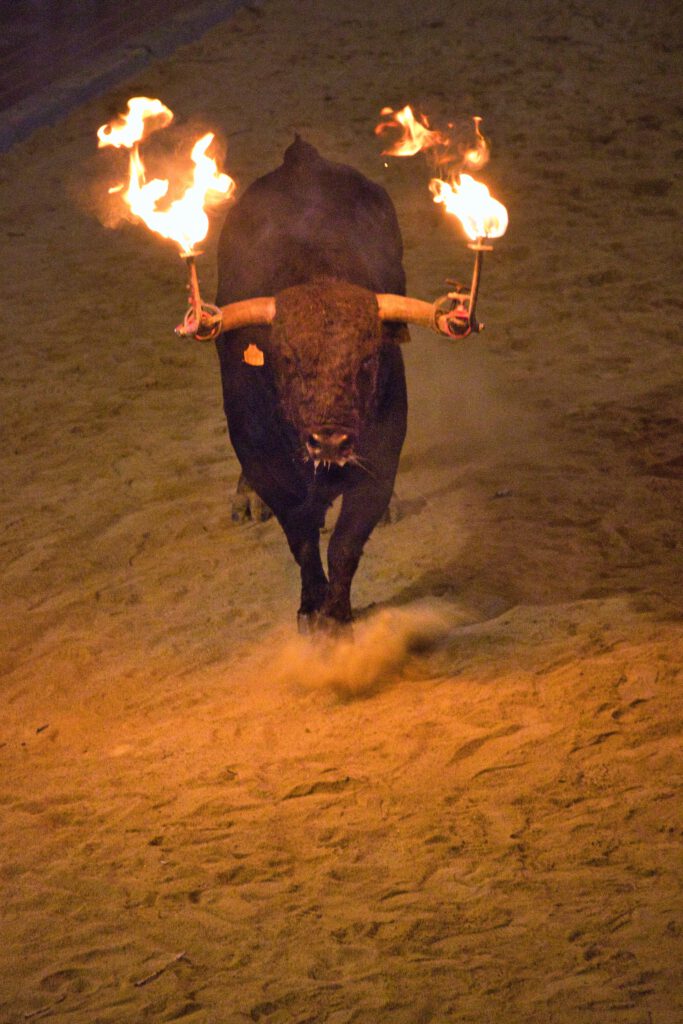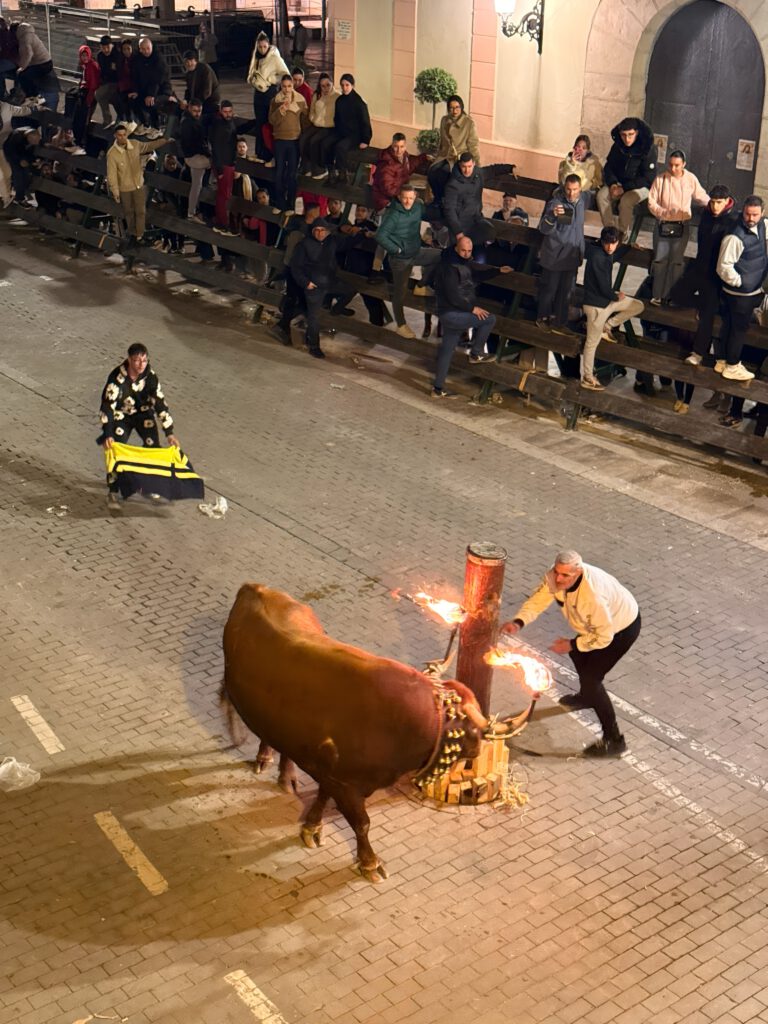 La programació va arrancar amb l’entrada del caixó, que va recórrer el trajecte des dels accessos del poble fins al centre, acompanyada de cavalls i música, marcant l’inici dels actes taurins. Posteriorment, es va procedir a la solta del bou salvatge Travieso, número 37, de la ramaderia Castillo de Azuel, procedent de Cardeña (Còrdova) i actualment establit al cebador Finca El Trapio de Nàquera. L’exemplar havia sigut adquirit per la Colla Volem un Cerril.