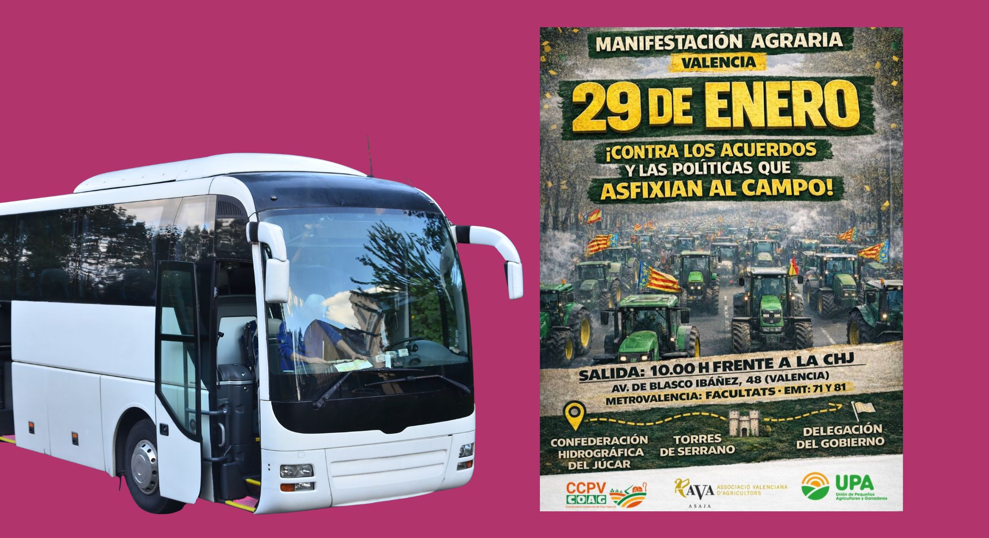 AVA i COAGRI posaran autobusos per a sumar-se a la manifestació pel camp valencià del 29 de gener