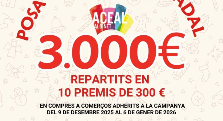 Amb aquesta campanya, ACEAL reafirma el seu compromís amb el teixit comercial d’Alginet i anima la ciutadania a fer les seues compres de Nadal al comerç local, contribuint així a dinamitzar l’economia del municipi i donar suport als establiments de proximitat.