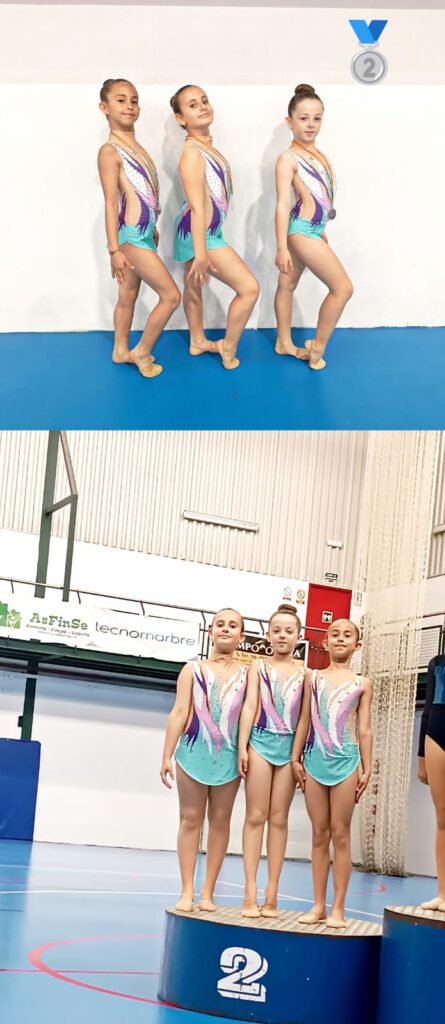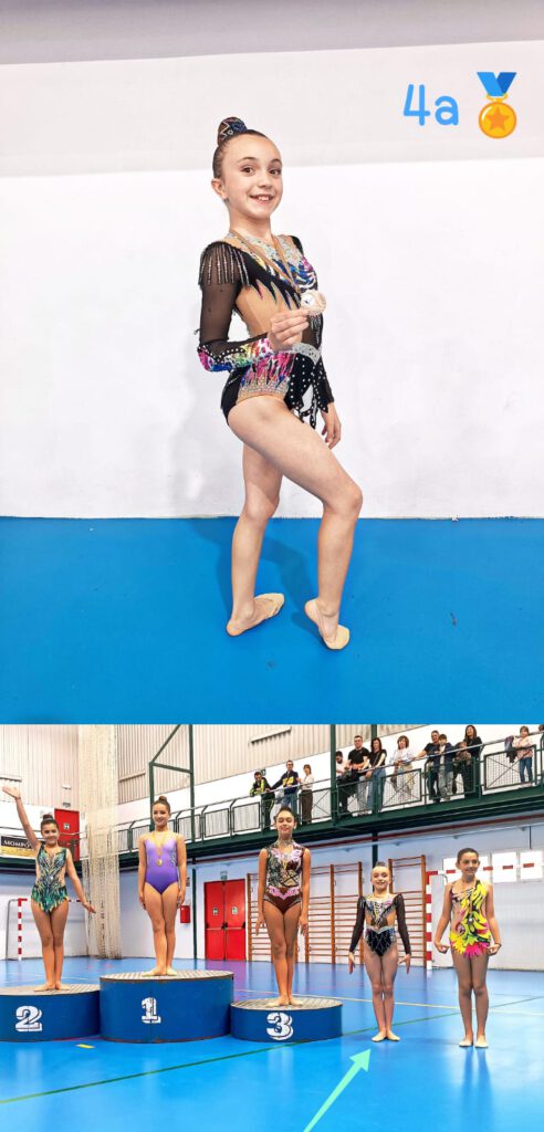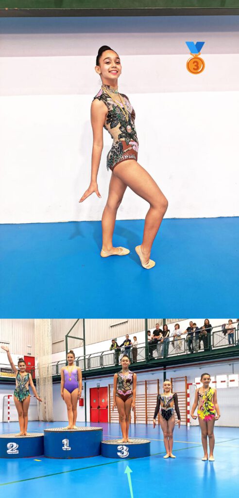 En categoria aleví, Maria Gil va pujar al podi amb una meritòria tercera posició en la modalitat d’aro. Per la seua banda, Lorraine Falk també va obtindre la tercera plaça en categoria infantil amb un exercici de pilota molt complet.