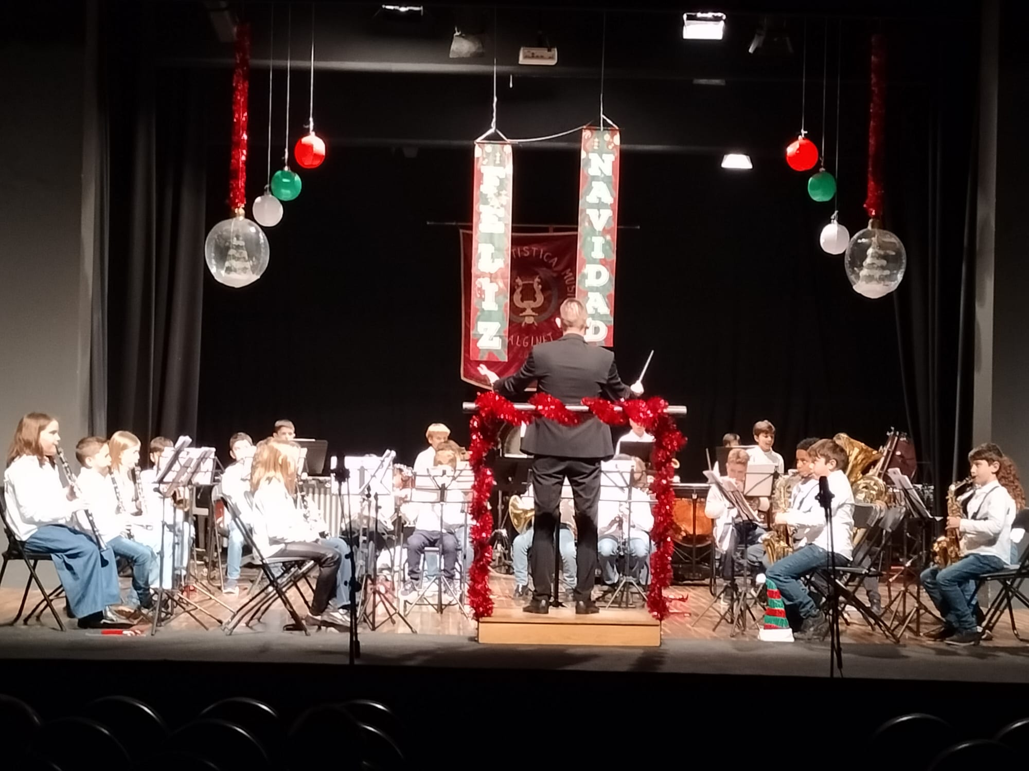 La Banda Infantil de la SAMA va iniciar el seu Concert de Nadal el dissabte 20 de desembre amb un repertori variat i emocionant, sota la direcció de Marc Sotorres Sotorres. Durant l’actuació, es va donar la benvinguda als nous membres de la banda, que es van estrenar oficialment davant del públic. El programa va incloure Playing Together ‘So Much Better i Mc Ronald’s March de Jan de Haan, així com Dos peces breus per a banda infantil, amb els moviments Tortoise Race i The Music Mill. També van interpretar clàssics com el tema principal de Star Wars de John Williams i Jingle Bells, demostrant la seua energia i il·lusió.
