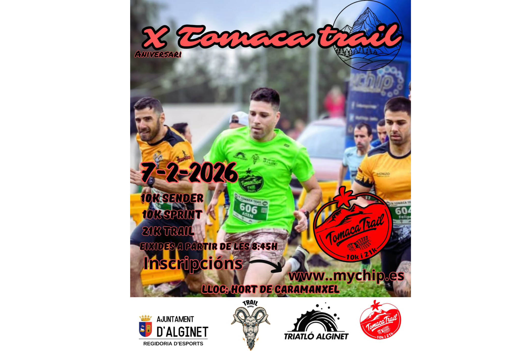 Amb recorreguts plens de sendes, paisatge i esperit esportiu, la Tomaca Trail no és només una competició, sinó una festa de l’esport popular», comenten des de l’organització, a càrrec de Trail Alginet i Triatló Alginet.